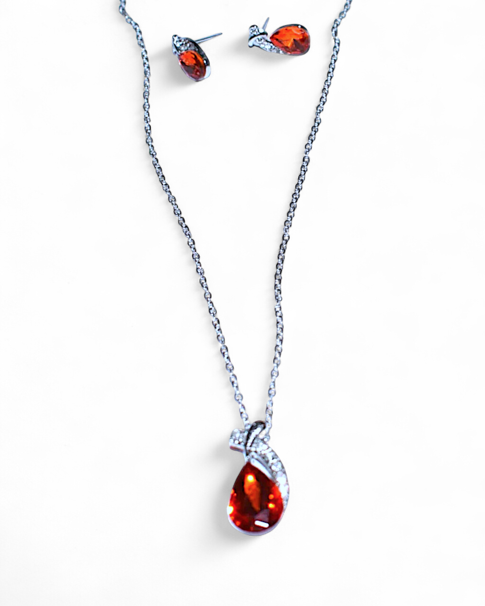 A fiery embrace of elegance and allure, the Amber Glow Set radiates warmth and sophistication. Featuring a shimmering necklace and matching earrings, this set is a symbol of passion and grace. Whether for a romantic evening or a bold daytime statement, let your inner fire shine!
