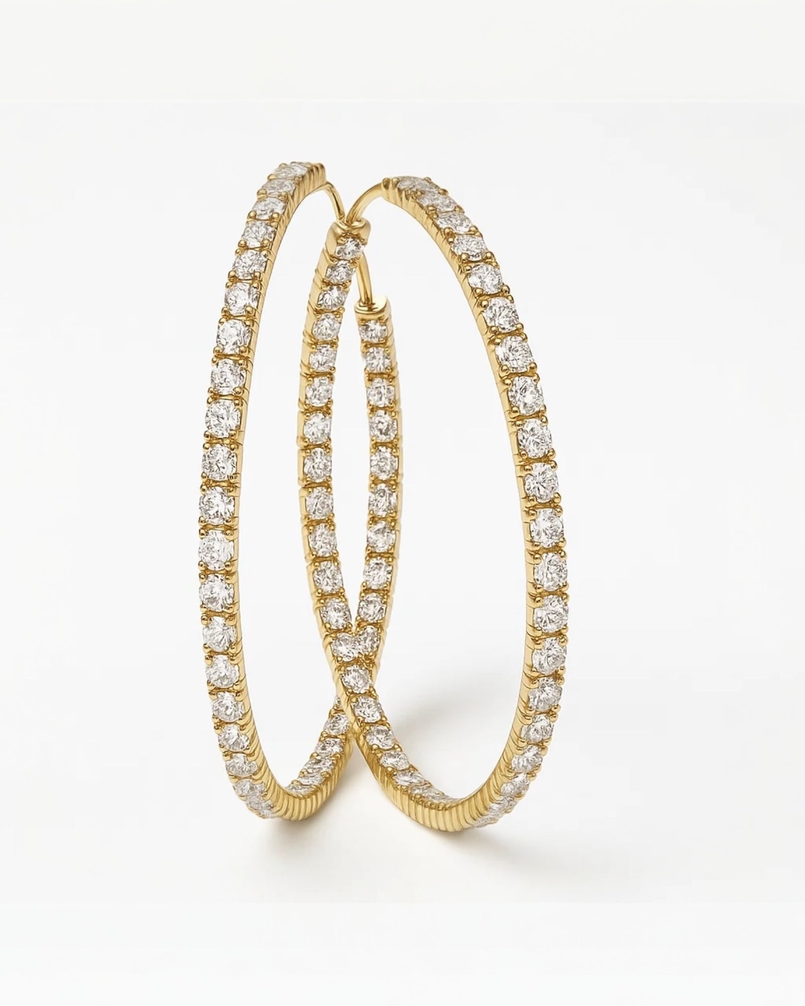 Drape yourself in luxury with our dazzling crystal-studded gold hoop earrings, designed to turn heads and elevate every look. Whether you’re dressing up for a glamorous night out or adding a touch of sparkle to your everyday style, these hoops are the perfect statement piece.