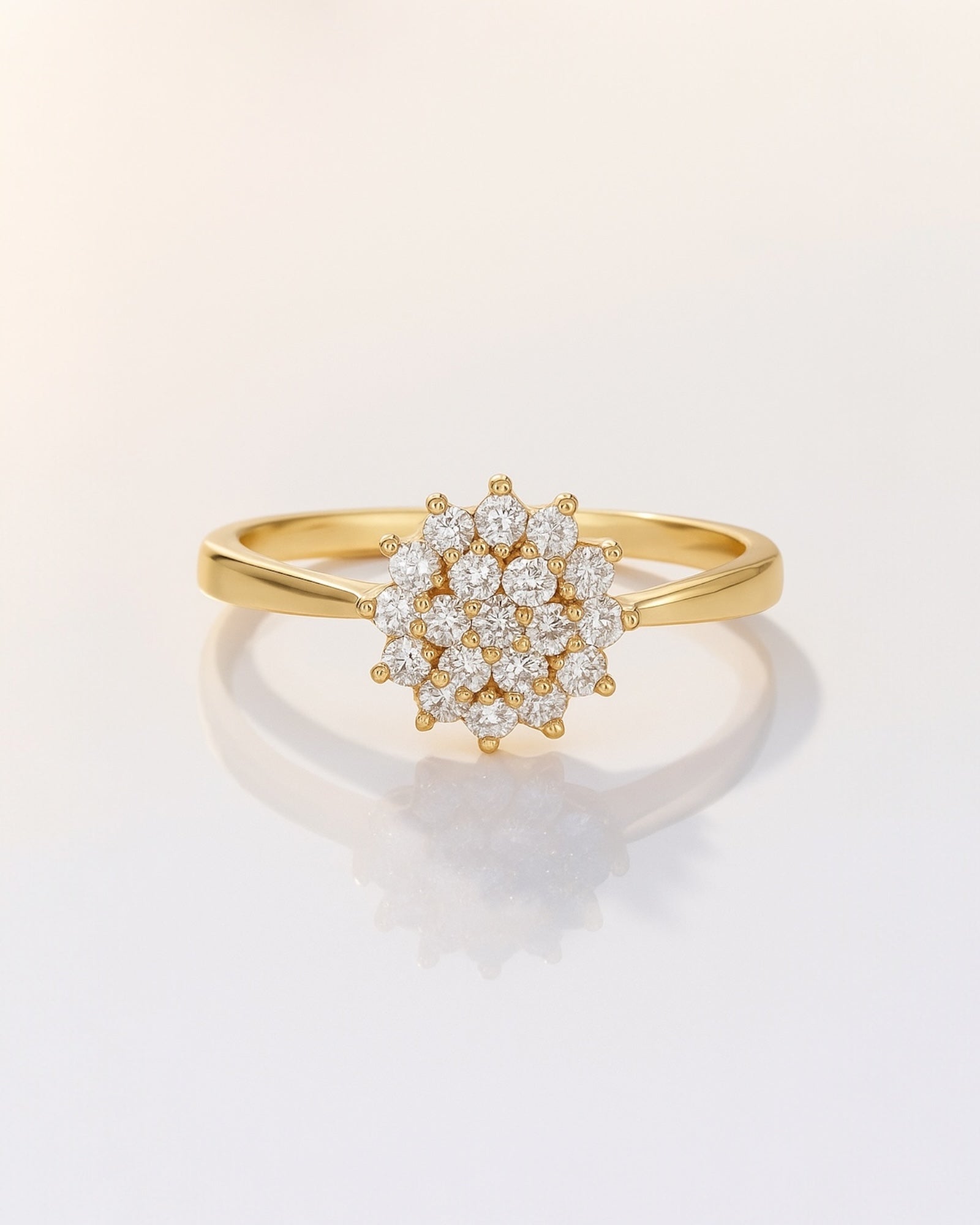 Delicate like a petal, radiant like the sun — the Golden Bloom Ring shines with a soft cluster of stones that blossom from the center like a daisy in full bloom ✨. Light, timeless, and effortlessly graceful.