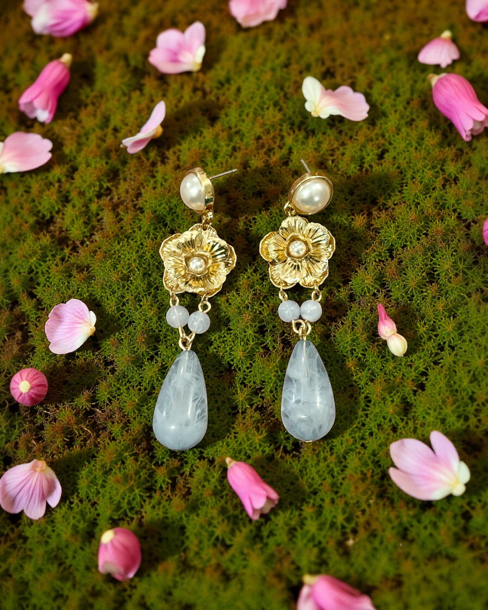 Like morning dew resting on wild blossoms — the Iris Dew earrings bring soft elegance to your every step.