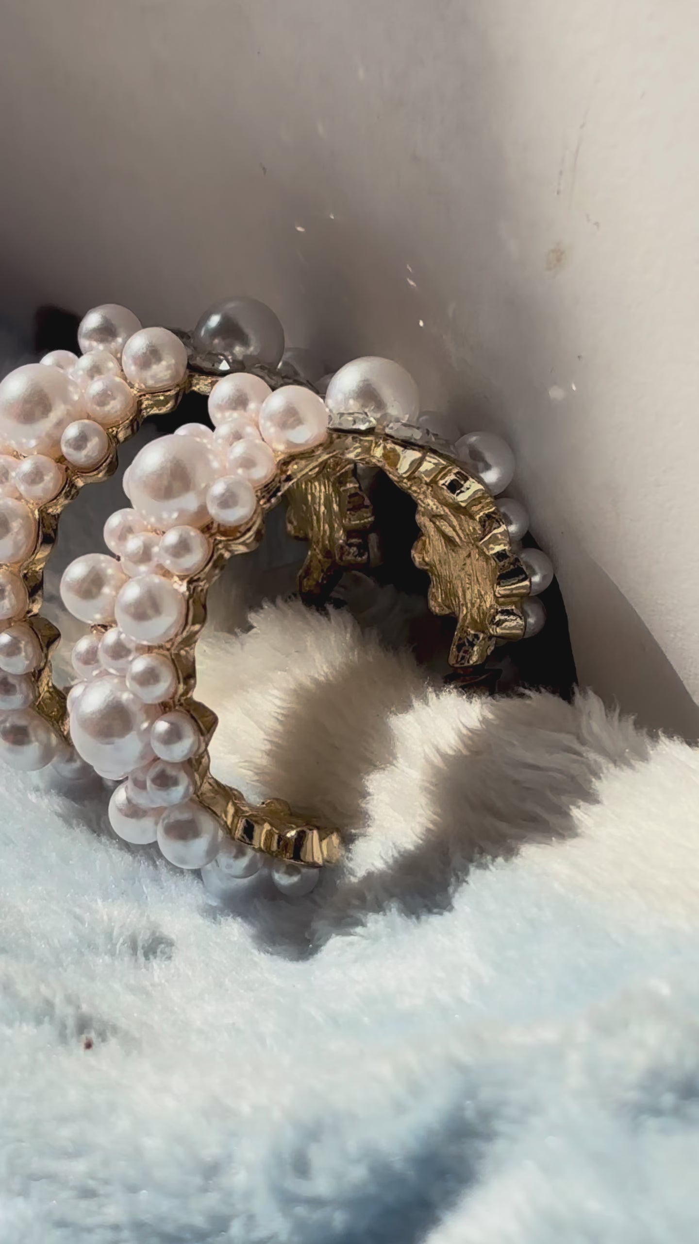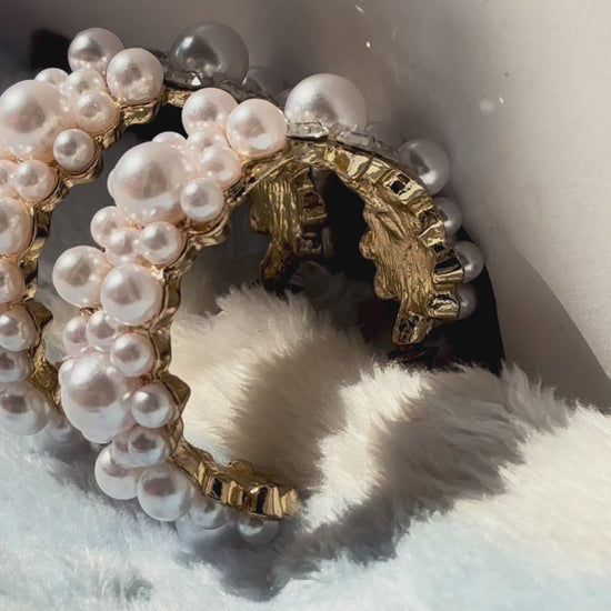 A symphony of elegance in every curve, these hoops are strung with miniature pearls like musical notes dancing on a golden stave.