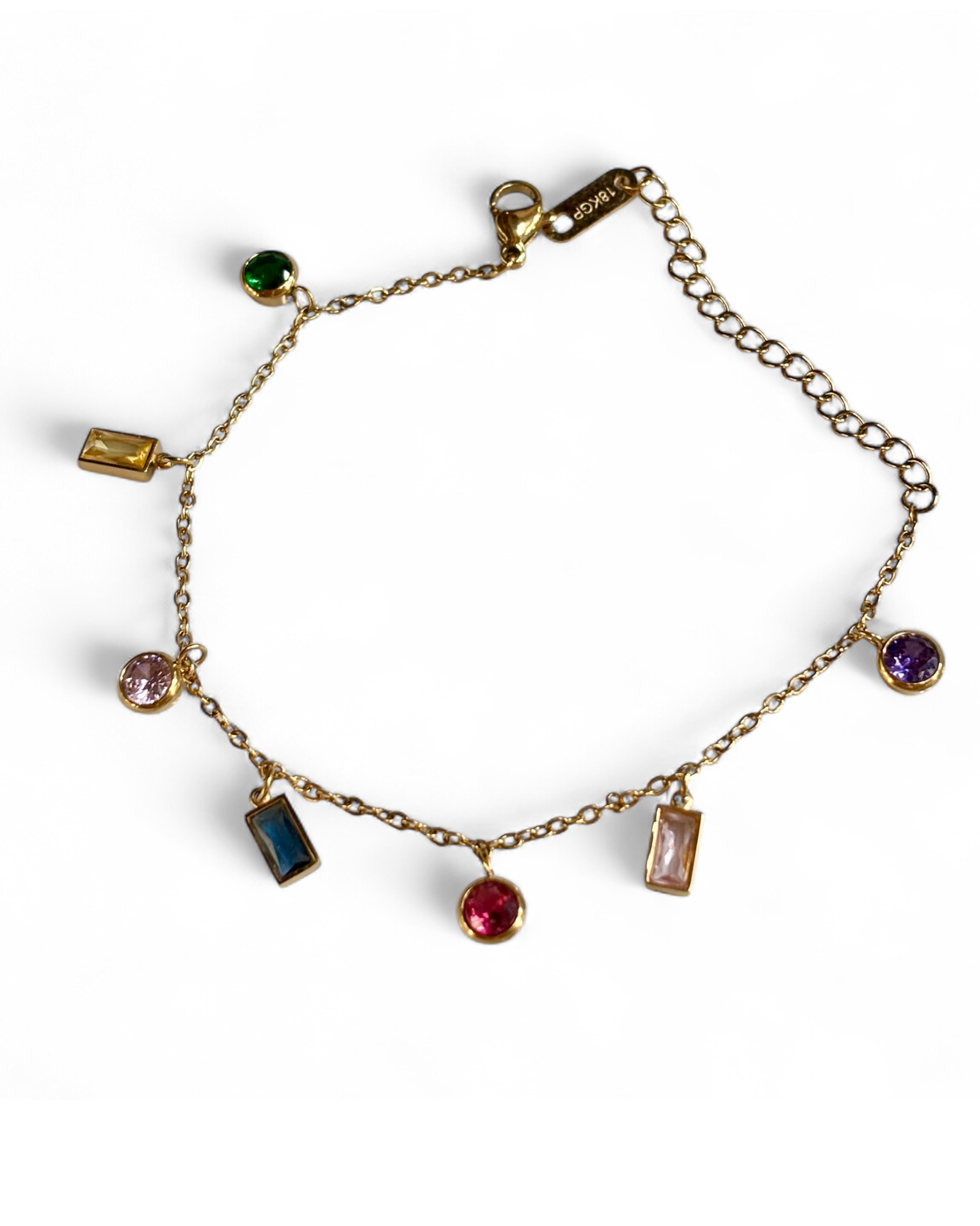 Step into a kaleidoscope of charm š ā the Jewel Parade Bracelet is a carnival of color and class. Crafted in durable stainless steel and dipped in 18K gold, it dances with candy-bright stones in geometric harmony.