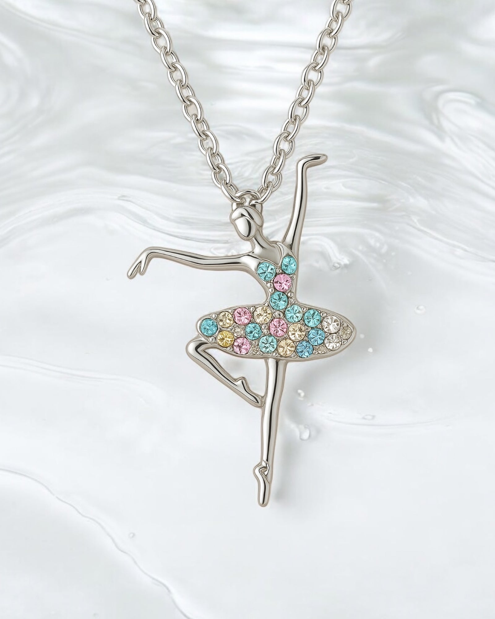 Inspired by the grace of a dancer, this delicate pendant twirls with pastel sparkles—just like you do through life’s little moments. A piece for the woman who finds her rhythm, even in the quiet.